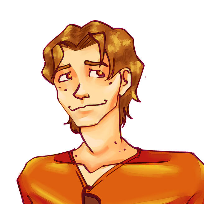 Rory (creator: alliumeyes) is the lead singer of the band Shoot the Shot Glass. He met August Carson in 2023 at an end-of-the-year party for Cat People Records. The two quickly hit it off, and now the bands are friends. Gus and Rory have recorded music together and shown up in public together so many times that their friendship got them on the cover of AltPress magazine, getting STSG a lot of newfound fame.